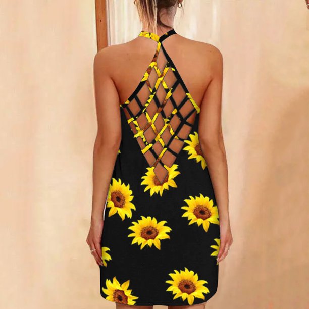 Womens Sunflower Print O Neck Sleeveless Sexy Blouse Vest Fashion Tank Dress Tangnade Clothing Walmart Com